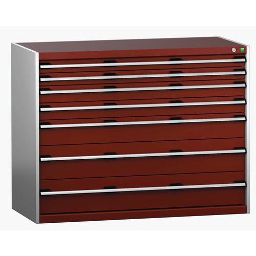 Szafka warsztatowa z szufladami Bott Cubio 200, 100 x 130 x 65 cm, 7 szuflad, szaro-czerwona
