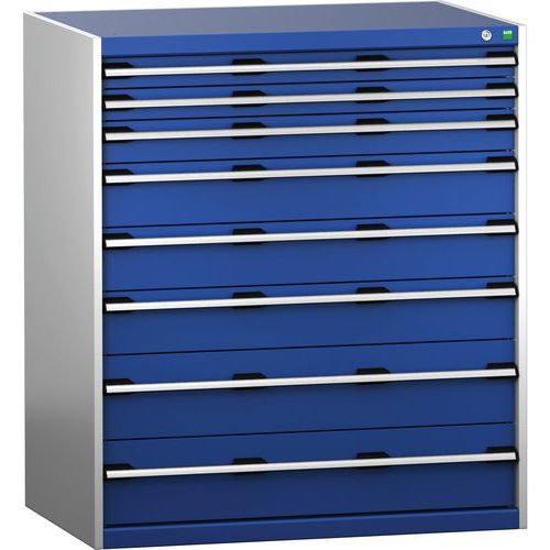 Szafka warsztatowa z szufladami Bott Cubio 200, 120 x 105 x 75 cm, 8 szuflad, szaro-niebieska