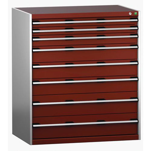 Warsztatowa szafka z szufladami Bott Cubio 200, 120 x 105 x 75 cm, 8 szuflad, szaro-czerwona