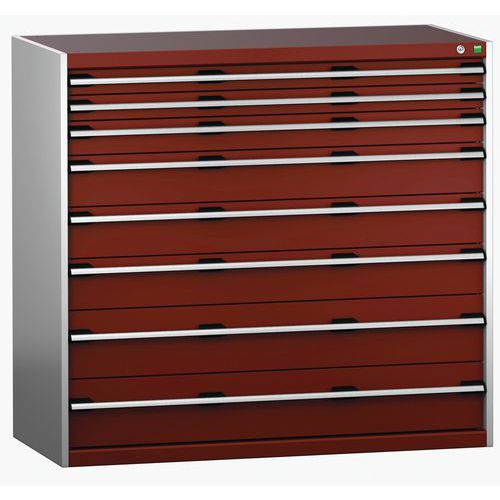 Szafka warsztatowa z szufladami Bott Cubio 200, 120 x 130 x 65 cm, 8 szuflad, szaro-czerwona