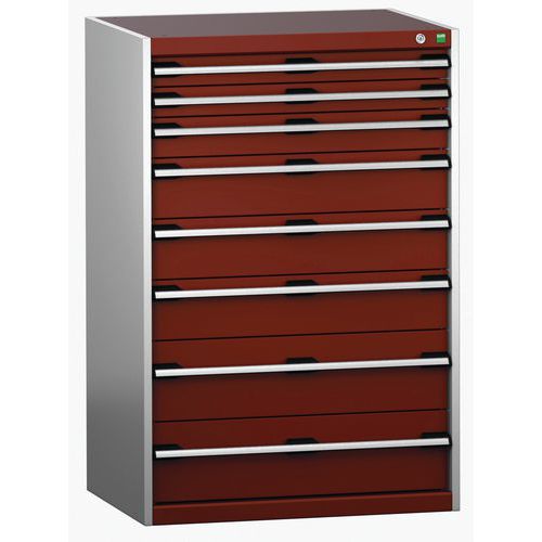 Warsztatowa szafka z szufladami Bott Cubio 200, 120 x 80 x 65 cm, 8 szuflad, szaro-czerwona