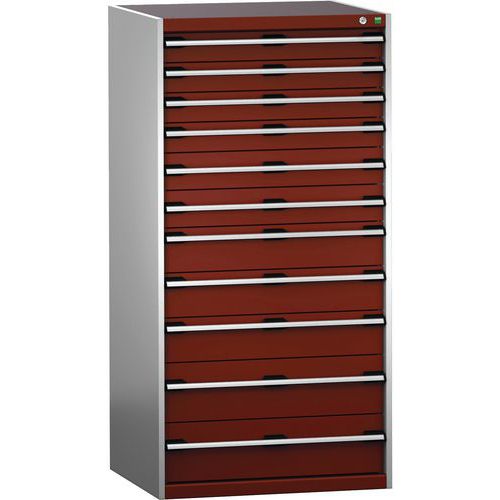 Warsztatowa szafka z szufladami Bott Cubio 200, 160 x 80 x 75 cm, 11 szuflad, szaro-czerwona