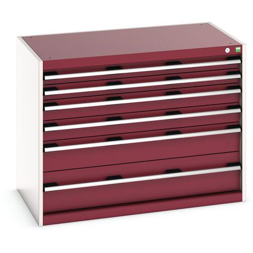 Warsztatowa szafka z szufladami Bott Cubio 200, 80 x 105 x 65 cm, 6 szuflad, szaro-czerwona