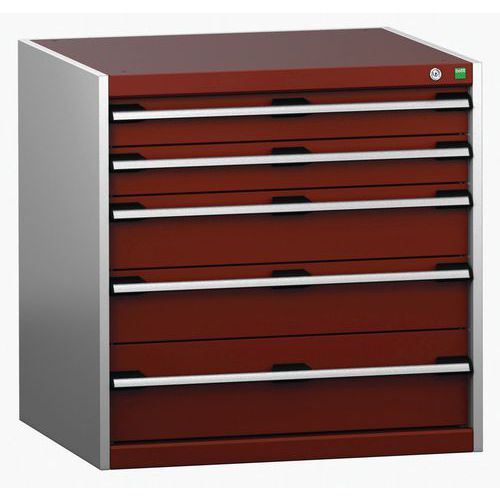 Warsztatowa szafka z szufladami Bott Cubio 200, 80 x 80 x 75 cm, 5 szuflad, szaro-czerwona