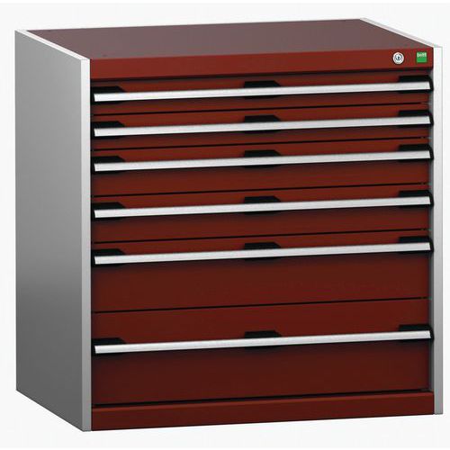 Warsztatowa szafka z szufladami Bott Cubio 200, 80 x 80 x 65 cm, 6 szuflad, szaro-czerwona