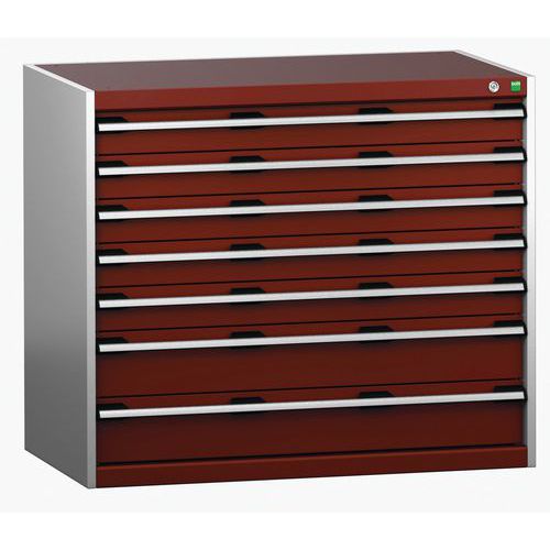 Warsztatowa szafka z szufladami Bott Cubio 200, 90 x 105 x 65 cm, 7 szuflad, szaro-czerwona