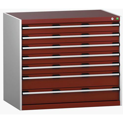 Szafka warsztatowa z szufladami Bott Cubio 200, 90 x 105 x 75 cm, 7 szuflad, szaro-czerwona