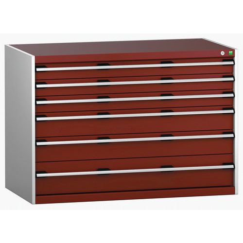 Szafka warsztatowa z szufladami Bott Cubio 200, 90 x 130 x 75 cm, 6 szuflad, szaro-czerwona