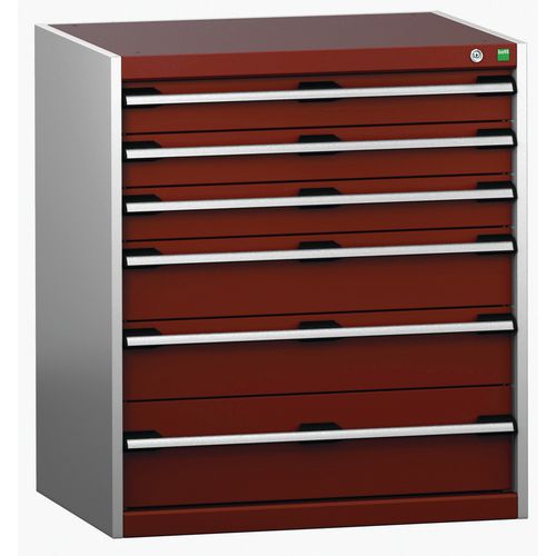Warsztatowa szafka z szufladami Bott Cubio 200, 90 x 80 x 65 cm, 6 szuflad, szaro-czerwona