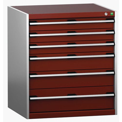 Warsztatowa szafka z szufladami Bott Cubio 200, 90 x 80 x 75 cm, 6 szuflad, szaro-czerwona