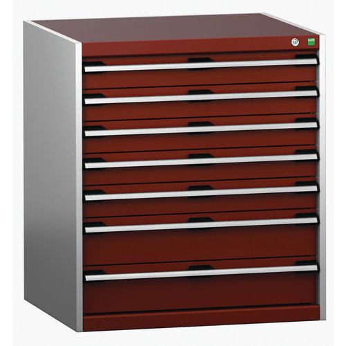 Warsztatowa szafka z szufladami Bott Cubio 200, 90 x 80 x 75 cm, 7 szuflad, szaro-czerwona
