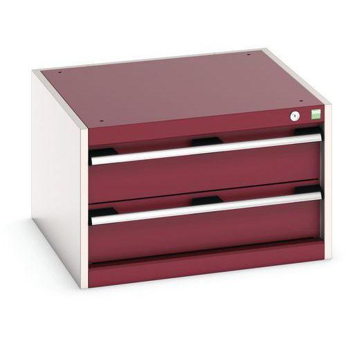 Warsztatowa szafka z szufladami Bott Cubio, 40 x 65 x 65 cm, 2 szuflady, szaro-czerwony