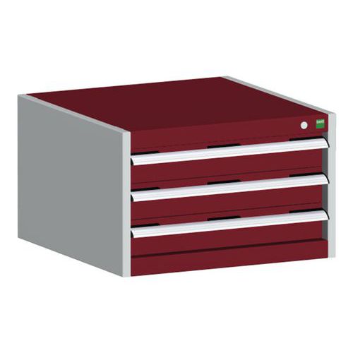 Warsztatowa szafka z szufladami Bott Cubio, 40 x 65 x 75 cm, 3 szuflady, szaro-czerwona