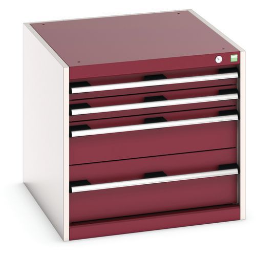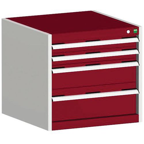 Warsztatowa szafka z szufladami Bott Cubio, 60 x 65 x 75 cm, 4 szuflady, szaro-czerwony