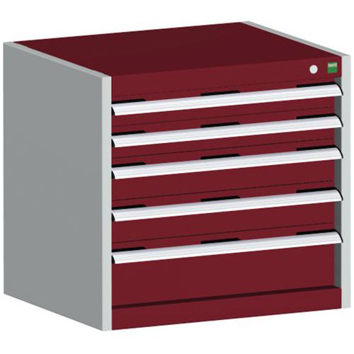 Warsztatowa szafka z szufladami Bott Cubio, 60 x 65 x 52,5 cm, 5 szuflad, szaro-czerwona