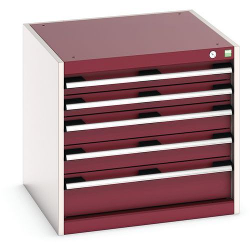 Warsztatowa szafka z szufladami Bott Cubio, 60 x 65 x 65 cm, 5 szuflad, szaro-czerwona