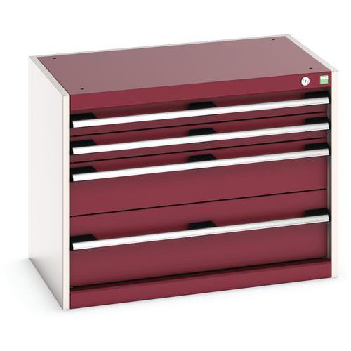Warsztatowa szafka z szufladami Bott Cubio, 60 x 80 x 52,5 cm, 4 szuflady, szaro-czerwona