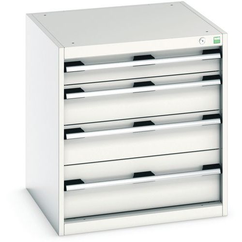 - Szafki szufladowe Bott Cubio z szufladami o nośności 75 kg i 100% wysuwem na łożyskach rolkowych.