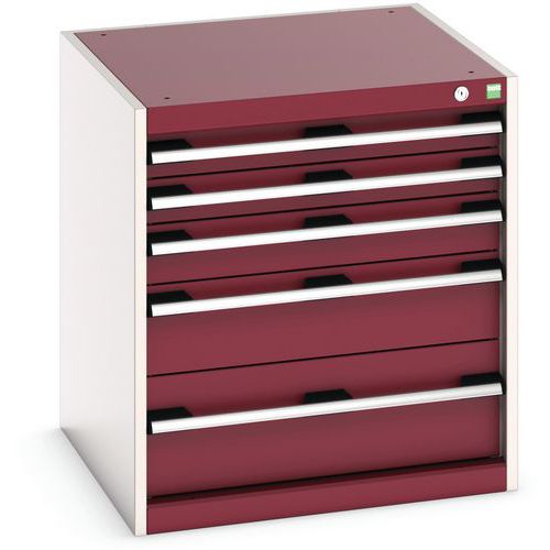 Warsztatowa szafka z szufladami Bott Cubio, 70 x 65 x 65 cm, 5 szuflad, szaro-czerwona