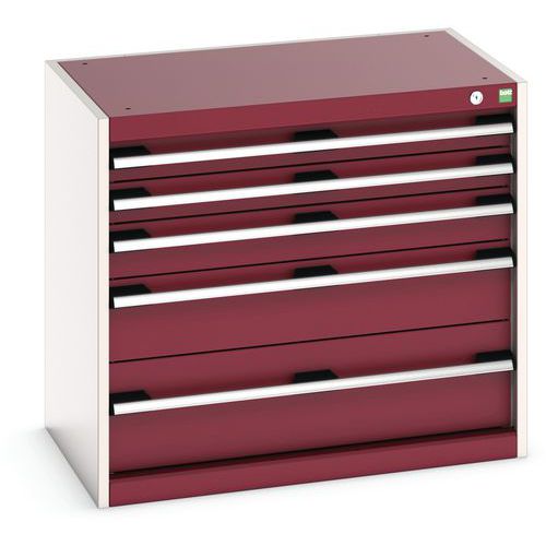 Warsztatowa szafka z szufladami Bott Cubio, 70 x 80 x 52,5 cm, 5 szuflad, szaro-czerwona