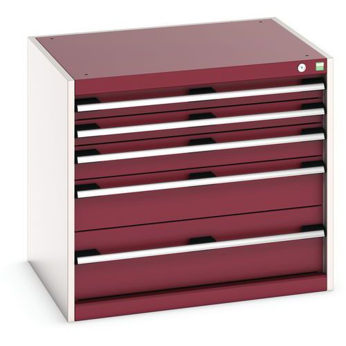 Warsztatowa szafka z szufladami Bott Cubio, 70 x 80 x 65 cm, 5 szuflad, szaro-czerwona