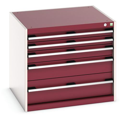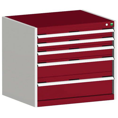 Warsztatowa szafka z szufladami Bott Cubio, 70 x 80 x 75 cm, 5 szuflad, szaro-czerwona