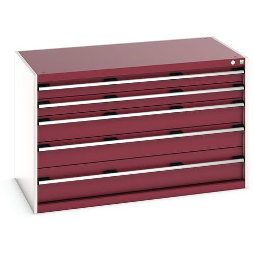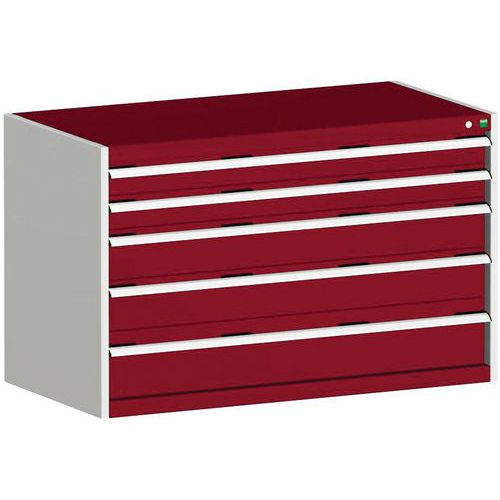 Szafka warsztatowa z szufladami Bott Cubio, 80 x 130 x 75 cm, 5 szuflad, szaro-czerwona
