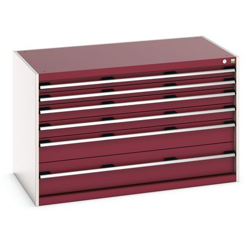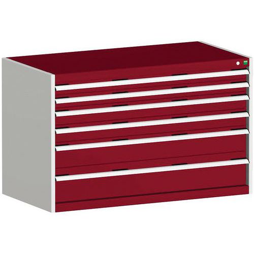 Szafka warsztatowa z szufladami Bott Cubio, 80 x 130 x 75 cm, 6 szuflad, szaro-czerwona