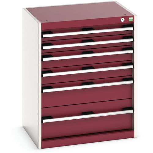 Warsztatowa szafka z szufladami Bott Cubio, 80 x 65 x 52,5 cm, 6 szuflad, szaro-czerwona