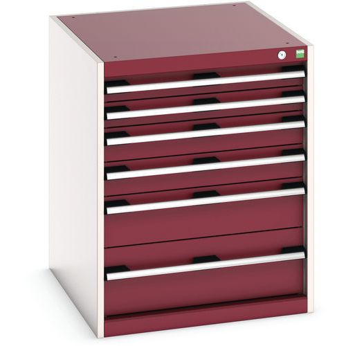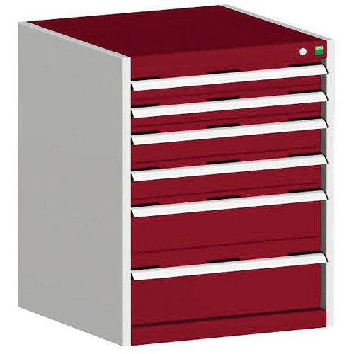 Warsztatowa szafka z szufladami Bott Cubio, 80 x 65 x 75 cm, 6 szuflad, szaro-czerwona