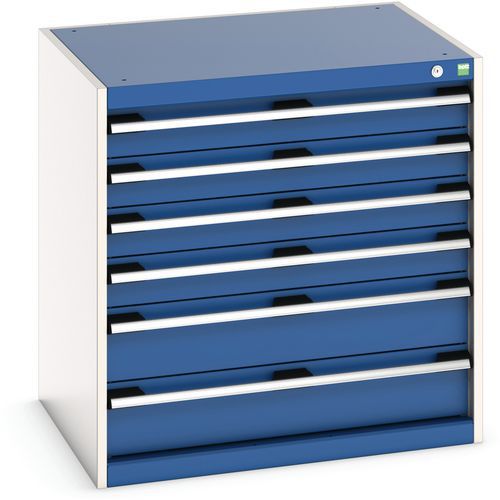 Warsztatowa szafka z szufladami Bott Cubio, 80 x 80 x 65 cm, 6 szuflad, szaro-niebieska