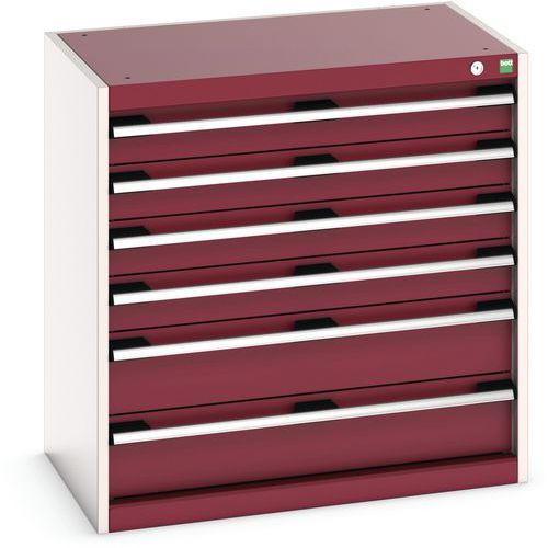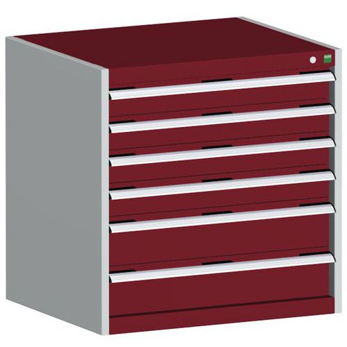 Warsztatowa szafka z szufladami Bott Cubio, 80 x 80 x 52,5 cm, 6 szuflad, szaro-czerwona