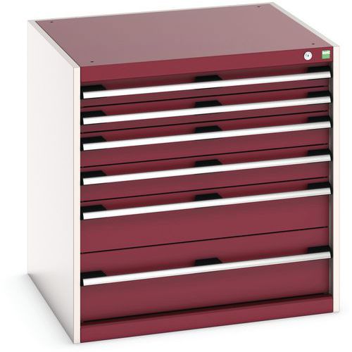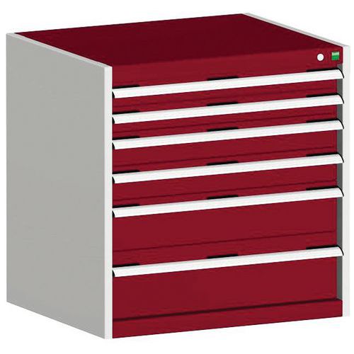 Warsztatowa szafka z szufladami Bott Cubio, 80 x 80 x 75 cm, 6 szuflad, szaro-czerwona
