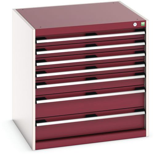 Warsztatowa szafka z szufladami Bott Cubio, 80 x 80 x 75 cm, 7 szuflad, szaro-czerwona