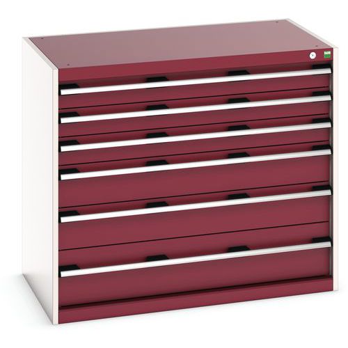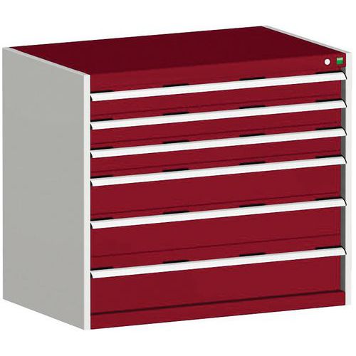Warsztatowa szafka z szufladami Bott Cubio, 90 x 105 x 65 cm, 6 szuflad, szaro-czerwona