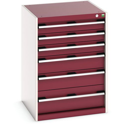 Warsztatowa szafka z szufladami Bott Cubio, 90 x 65 x 65 cm, 6 szuflad, szaro-czerwona