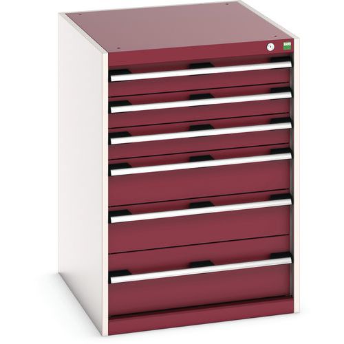 Warsztatowa szafka z szufladami Bott Cubio, 90 x 65 x 75 cm, 6 szuflad, szaro-czerwona