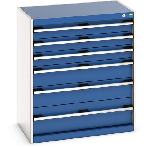 Warsztatowa szafka z szufladami Bott Cubio, 90 x 80 x 52,5 cm, 6 szuflad, szaro-niebieska