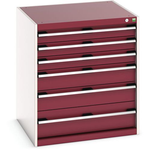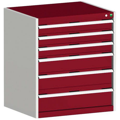 Warsztatowa szafka z szufladami Bott Cubio, 90 x 80 x 75 cm, 6 szuflad, szaro-czerwona