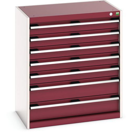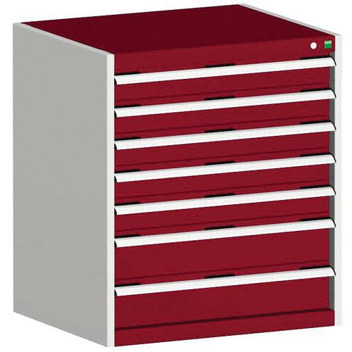 Warsztatowa szafka z szufladami Bott Cubio, 90 x 80 x 52,5 cm, 7 szuflad, szaro-czerwona