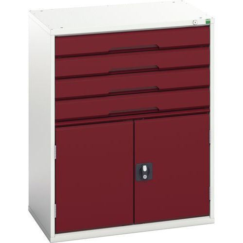 Warsztatowa szafka z szufladami Bott Verso, 100 x 80 x 55 cm, 4 szuflady, 1 szafka, szaro-czerwona