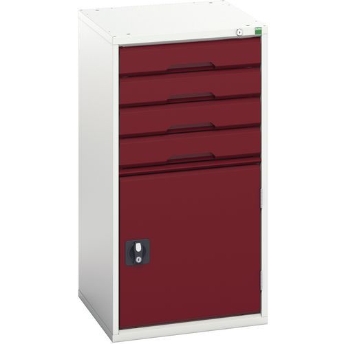 Warsztatowa szafka z szufladami Bott Verso, 100 x 52,5 x 55 cm, 4 szuflady, 1 szafka, szaro-czerwona