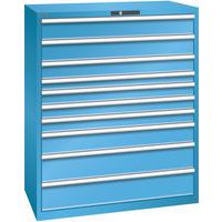 Szafka warsztatowa Lista, 1193x725x1450 mm, 200 kg, 10 szuflad, jasnoniebieska