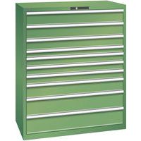 Szafka warsztatowa Lista, 1193x725x1450 mm, 200 kg, 10 szuflad, zielona