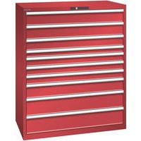 Szafka warsztatowa Lista, 1193x725x1450 mm, 200 kg, 10 szuflad, czerwona