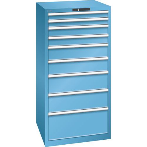 Szafki warsztatowe z szufladami LISTA, 717x725x1450 mm, 9 lub 10 szuflad, nośność szuflad 75 lub 200 kg