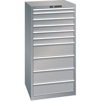 Szafka warsztatowa z szufladami LISTA, 717x725x1450 mm, 10 szuflad, nośność 75 kg, szaro-srebrna