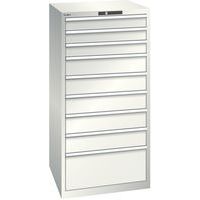 Szafka warsztatowa LISTA, 9 szuflad = 3 x 100 / 5 x 150 / 1 x 300 mm, 717 x 725 x 1450 mm, nośność 200 kg