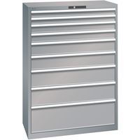 Szafka warsztatowa Lista z szufladami, nośność 75 kg, 9 szuflad, szaro-srebrny