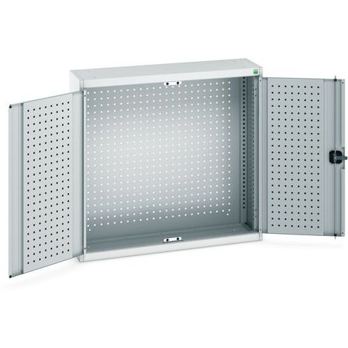 - Wisząca szafka metalowa z perforowaną ścianą tylną.